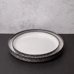 Maxwell & Williams Granite Porcelain Serveware Set With 2x High-Rim Platters, 28cm And 33cm – Caviar