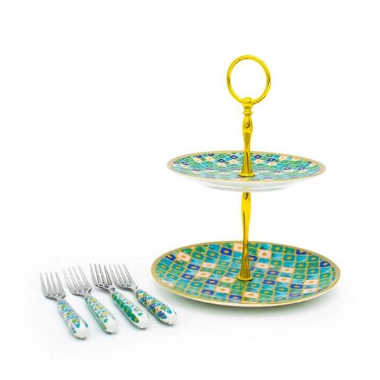 Maxwell & Williams 5pc Mint China Tea Set With 2-Tier Cup Cake Stand And 4x Forks – Teas & C’s Kasbah