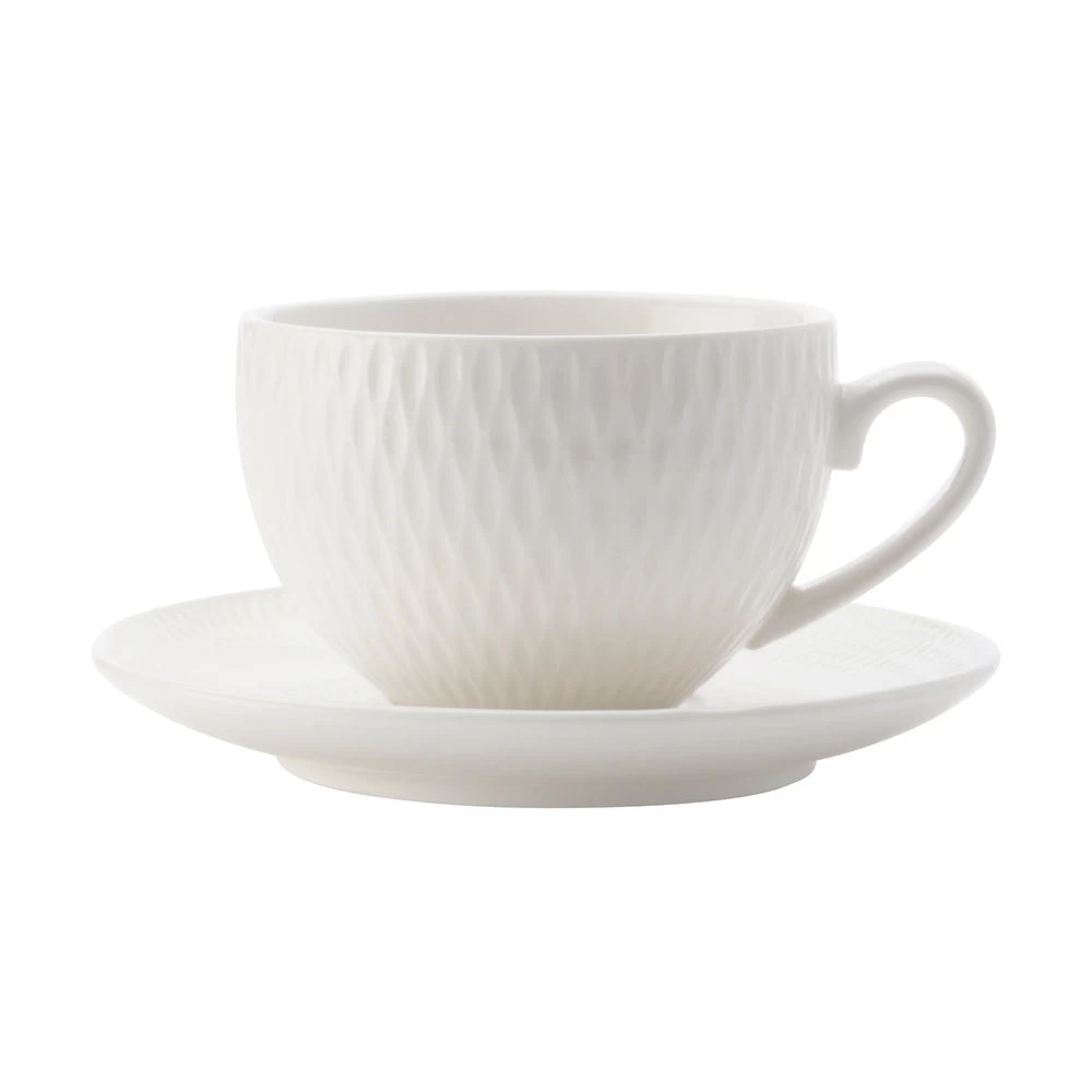 Maxwell & Williams Diamonds Round Demi Tasse Cup & Saucer – White – 4 Pack