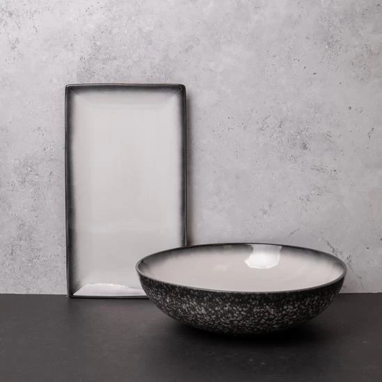 Maxwell & Williams Granite Porcelain Serveware Set With 34cm Rectangle Platter And Serving Bowl – Caviar