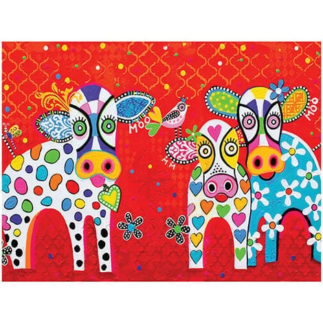 The Maxwell & William Pete Cromer happy moo day tea towel features the lovely image of a group of cows in a colourful and bold print style.