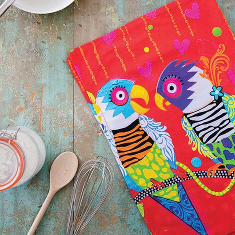 The Maxwell & William Pete Cromer tiger tiger tea towel features the lovely image of stunning birds in a colourful and bold print style.