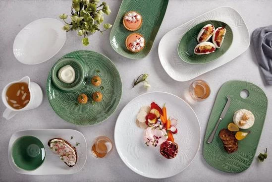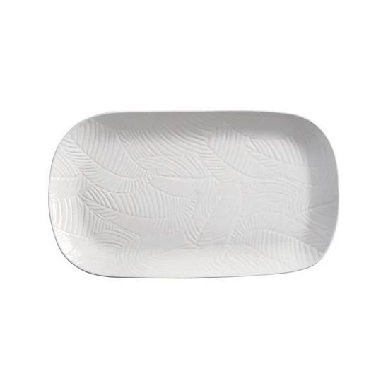 Stunning on its own, and breath-taking with other Panama pieces, this oblong serving dish will be the crowning glory of your dinner party or special meal. The wide expanse of white stoneware showcases its embossed foliage, lending textural and visual appeal to your table.